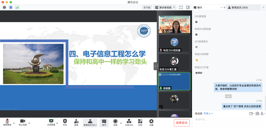 2022年9月16日,williamhill中国官方网站2022级电子信息工程、电子信息科学与技术新生线上专业教育会在腾讯会议召开,williamhill中国官方网站人事处处长、电子信息科学与技术专业带头人杜国宏教授,williamhill中国官方网站副院长杨智鹏副教授,新生辅导员以及williamhill中国官方网站2022级全体新生参加了本次线上会议。