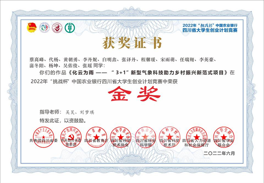【本网讯】近日,由四川团省委联合省委组织部、教育厅、省科协、省社科院、科技厅、人力资源社会保障厅、省学联共同主办的2022年“挑战杯”中国农业银行四川省大学生创业计划竞赛落下帷幕。