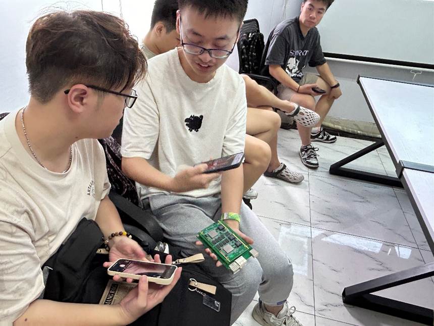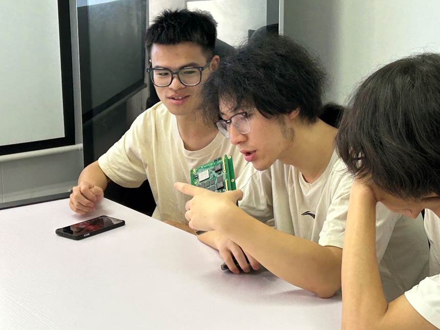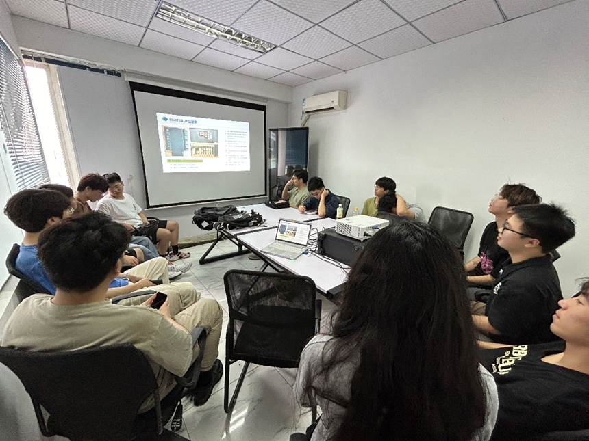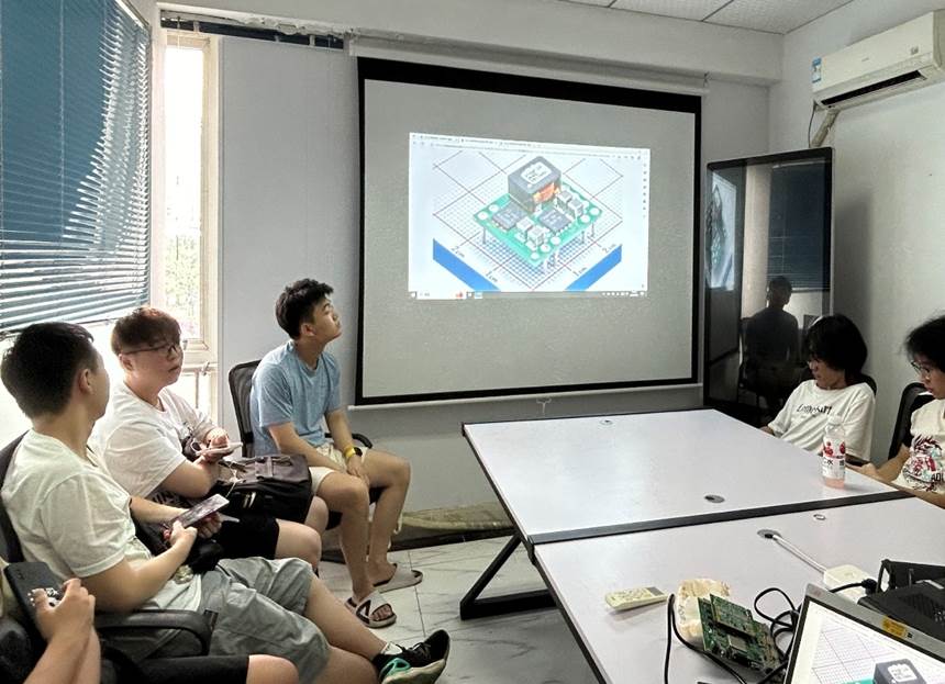 3、对公司的经典成熟产品项目的设计资料、设计思路及配套设计资料进行讲解学习,由硬件部工程师彭宥宬先生带领实习生学习公司成熟产品的设计方案,包括电路设计原理图、PCB制作过程、PCB成品展示,现场演示PCB的贴片、焊接过程,并安排学生亲自实践;