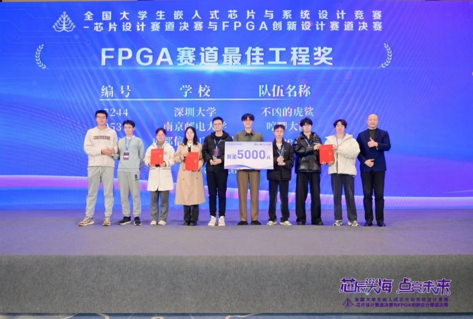 2024年12月1日,第七届全国大学生嵌入式芯片与系统设计竞赛——FPGA创新设计竞赛全国总决赛在南京圆满落下帷幕。本次竞赛汇聚了来自全国各地高校的优秀学子,他们在FPGA领域展开了激烈角逐,充分展现了创新思维与卓越的实践能力。我校共有55支队伍报名参赛,9支队伍获得国家级奖项。在AMD/Xilinx、安路、易灵思、高云四个分赛道中,我校学生荣获全国一等奖1项,二等奖3项、三等奖5项,最佳工程奖1项。