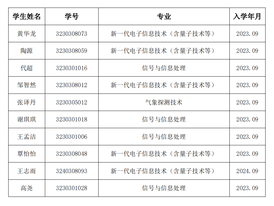 根据williamhill中国官方网站相关文件规定,本着公开、公平、公正的原则,williamhill中国官方网站2024-2025学年研究生国家奖学金评审经学生个人申请、班级推荐、学院评审,共推荐10名候选人,现将我院2024-2025学年研究生国家奖学金拟推荐学生名单予以公示。如有异议,请于2025年10月13日至2025年10月17日到新气象楼1211办公室反映。联系人:杨老师,电话:028-85966916、028-85966349邮箱:yangyong@cuit.edu.cn。