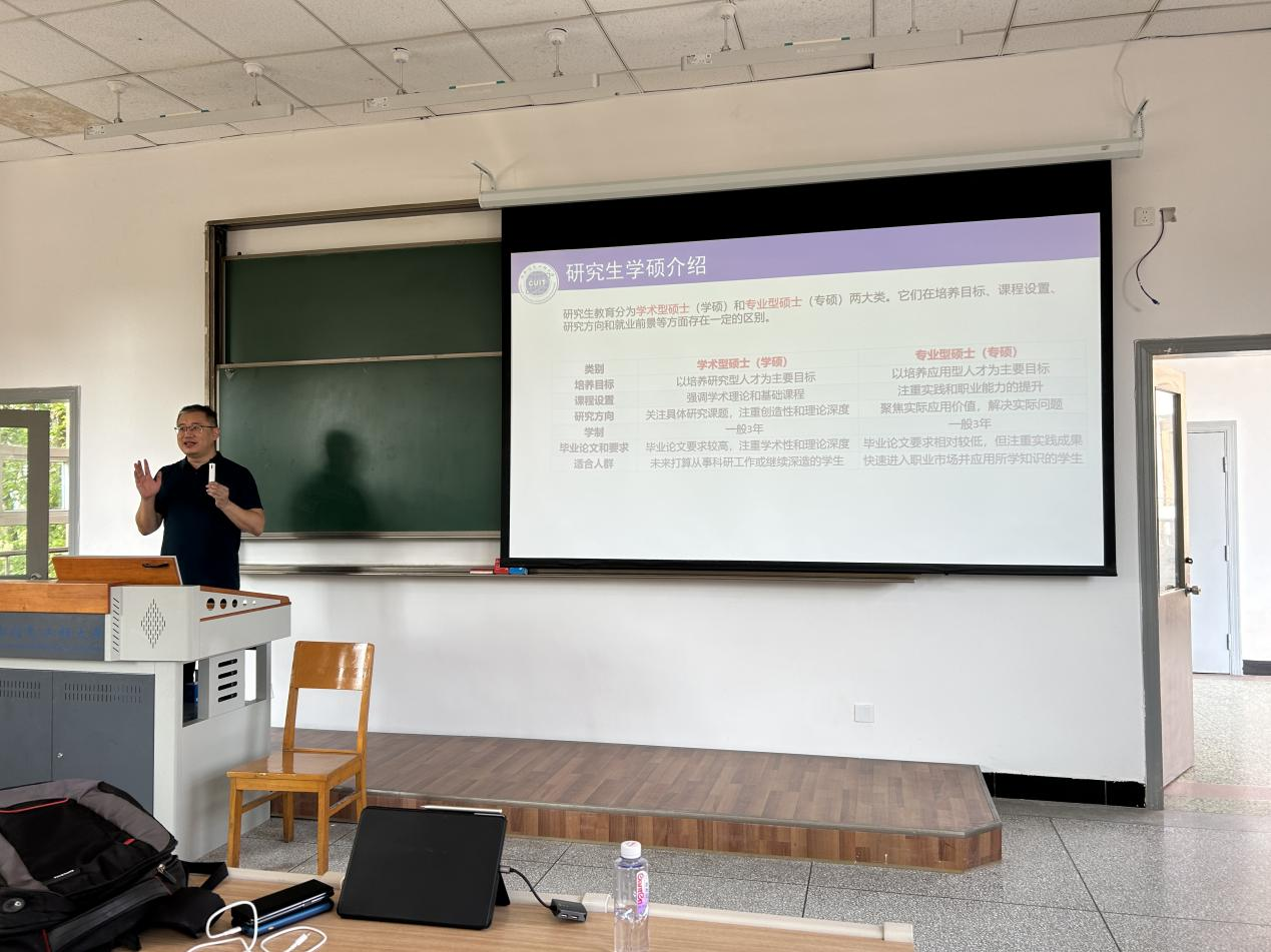 随后,学院主管研究生教学的副院长史朝教授解读了研究生教学培养相关内容。他分专业逐一向新生们介绍了培养方案中培养目标、课程设置、研究方向和和毕业要求等大家关心的问题。强调新生们应结合自己的研究方向和毕业要求,设定短期与长期目标,利用学术资源,进行系统的知识学习和深度的课题研究。最后,史朝教授希望大家能提前规划好自己的学习和科研方向,尽早适应和转变身份,预祝各位新生都能在新的人生阶段找到新的定位,希望同学们在研究生阶段能够快速成长、鹏程万里。