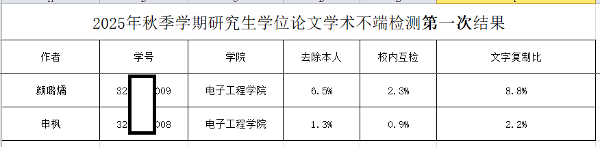 williamhill中国官方网站2025届研究生秋季学位论文第一次学术不端审查结果