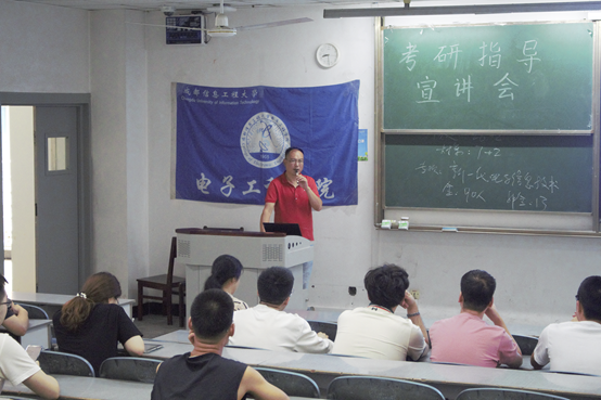 在大会上,缪燕平和杨勇将自己的所知讲给了准备考研的同学们,同学们也在宣讲会上提出了自己现阶段遇到的一些问题以及困难,书记们也相应解答了这些问题。大会刚开始,杨勇先是分析了近年的考研情况,以及给准备考研的同学们给出了今年学硕和专硕的招收数量,并且将一些新的概念讲给了大家,供大家参考、选择,杨勇系统的分析了现阶段考研应该怎样选择合适的方向。紧接着,由缪燕平宣讲,缪燕平宣讲一开始,就给大家说要有一个良好的生活习惯,健康饮食、健康作息等,希望大家能有一个好的身体、好的心态去面对考研,她鼓励大家要有能够抗住困难的决心,要有坚持下去的信心,为大家立起了精神上的战旗。
