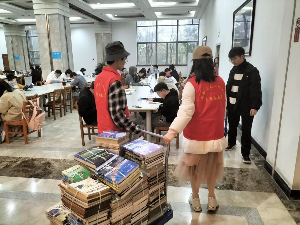 为了更好服务于同学们的阅读需求,为同学们提供更好的服务与帮助,并使得图书馆更加整洁。2021年12月10日星期五,青志协电子分会协同青志协资环分会共同举办了“服务图书馆志愿活动”。该活动主要是将图书整理分类,并搬运至楼下储藏间。