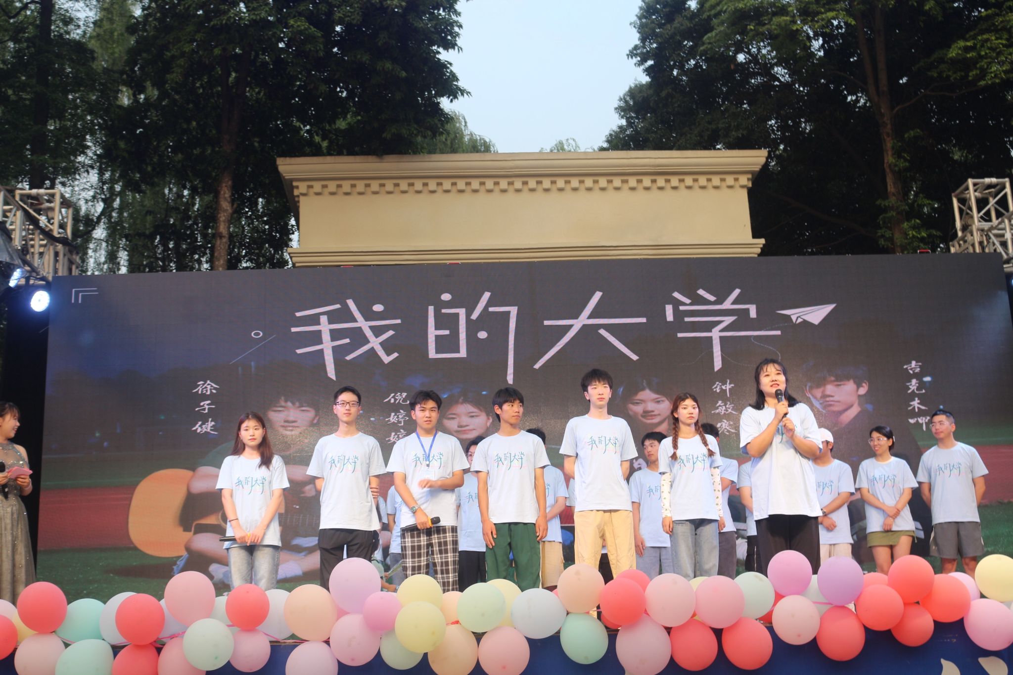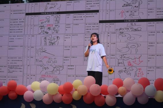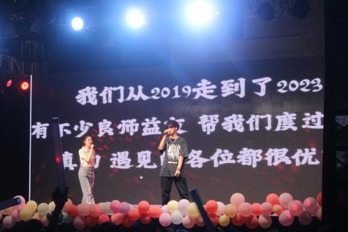 在黄昏的陪伴下,毕业晚会于下午7点10分准时开始。首先举行了2023届毕业MV《我的大学》的首映仪式,MV由学院同学自己作词、自编自导自演,短片展现了同学们在大学四年的生活,他们从相遇、相识到相知的心路历程。首映仪式上,毕业MV的主演及主创团队上台为大家分享了此次拍摄的过程和体会,有难忘的拍摄经历、有剧本创作的灵感来源、有因为天气的取景遗憾、有第一个当主演的忐忑和兴奋、有看到成品后的骄傲和喜悦等情感分享,毕业MV指导老师苏露谈到,毕业MV的拍摄为学院的同学们提供一个展示的平台,亲身体验了作词、写剧本、当主演、做摄影师、做场记、做后期编辑等的辛苦与幸福。同时也强调了团队合作中沟通的重要性。
