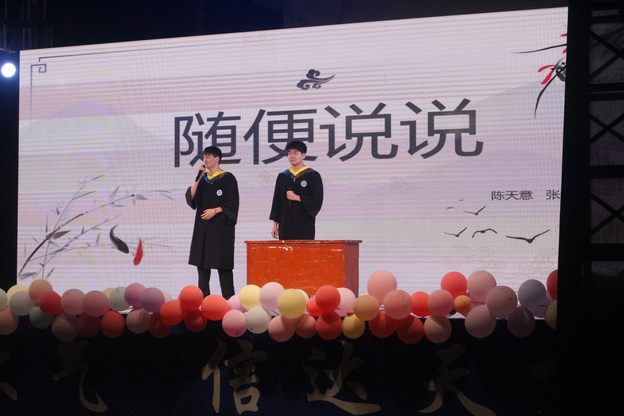 成长岁月——由我院老师们带来的《名师讲堂开课啦》让同学们想起了校园里的美好时光;才华横溢的莫唯、范子文用一首原创《写首跟成信大有关的歌》表达了对校园生活的纪念;气象防灾减灾科普剧《雷》更是获全场称赞;电信198班的同学的《勇气》吐露出他们勇敢面对困难的决心;袖舞飞扬,让人感到古韵古香之美的《书简》舞蹈引得全场观众欢呼;
