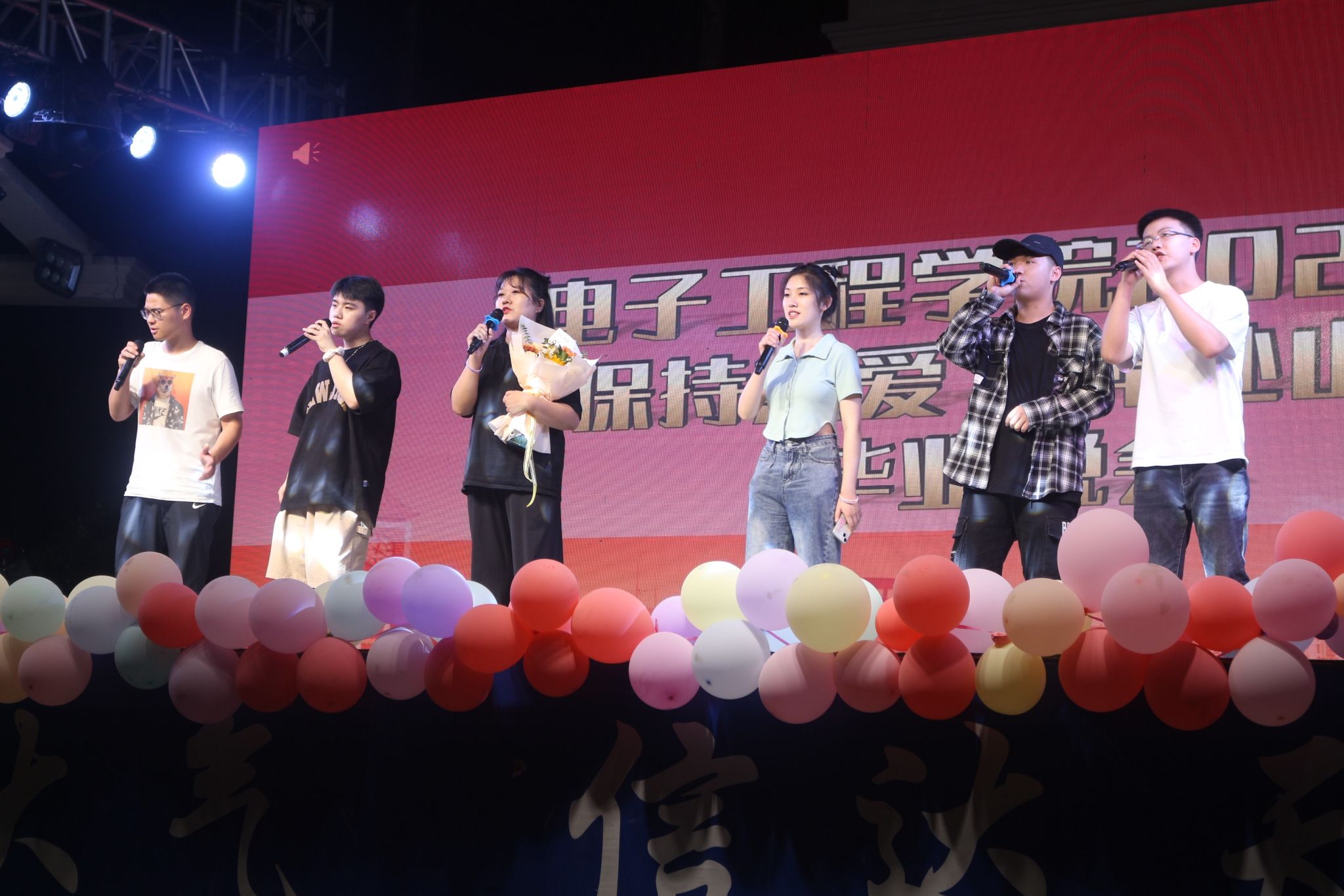 飞扬青春——《삐딱하게(狂放)》宣泄了大家毕业的惆怅情绪;趣味相声《随便说说》说出了曾经校园的美好生活;《知足》袒露出对校园的热爱;《昨天今天明天》对大学生活的美好回忆;大艺团以《想见你》引起了全场观众共鸣;晚会在欢声笑语以及感动不舍中从日落黄昏持续到深夜,最终在合唱《我们的青春》中圆满落幕。