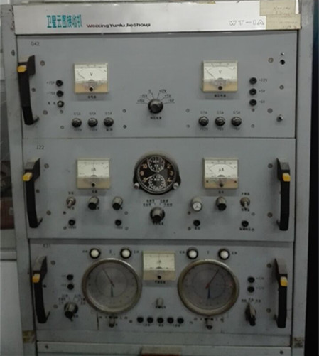 本机为83年产国产机,由小规模集成电路组成。该机由南京大桥机四厂生产。左机柜为天线自动跟踪卫星控制机柜(包括步进跟踪、方位、仰角驱动等电路)。右机柜为信息接收处理机柜(包括卫星信号变频放大、成图处理)。该机用于接收美国的诺阿NOAA系列极轨气象卫星,相当于我国风云一号FY-1极轨气象卫星。所发的是实时卫星信号,并处理成所需的各种图片。2005年美国极轨卫星仍在工作着。