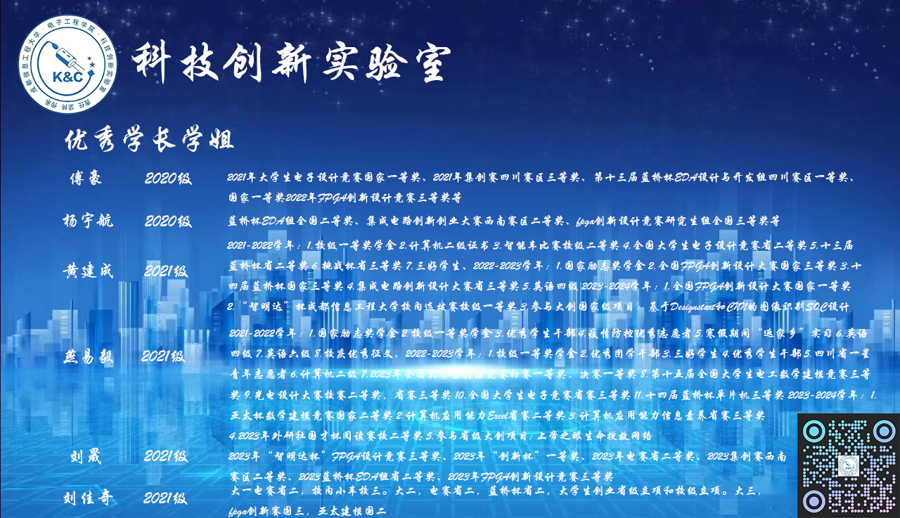 明天就要开始实验室考核了,不知道参加考核的同学们准备得怎么了,这次小创带来了有关科创实验室的第二波爆料,主要内容是近两年一些优秀的学长学姐的学习经历以做榜样,以及进入实验室后的培养方向。希望大家能对科创实验室有更多的了解。如果你对电子感兴趣,或是希望拥有一个更广阔的舞台,就不要错过这次科技创新实验室的招新哟。想了解更多的话,就扫描下面二维码与小创取得联系吧,小创会尽力回答大家的问题的.